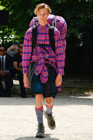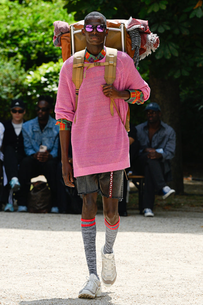 Shirts that look like normal cotton madras checks, ombre checks, or stripes are replaced with polyester mesh or gauze, which are light, quick-drying, and stretchy materials. For the knitwear, various mesh fabrics were digitized to create a seamless, lightweight, and lean design.