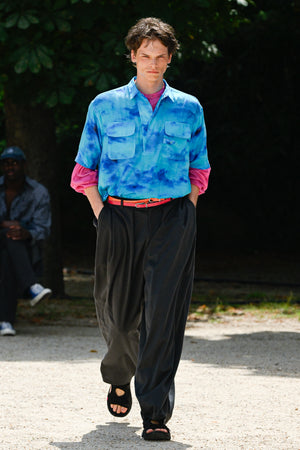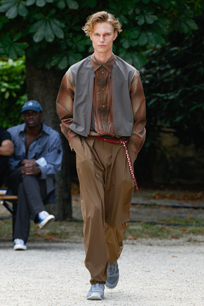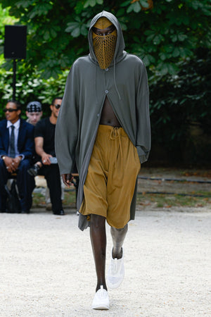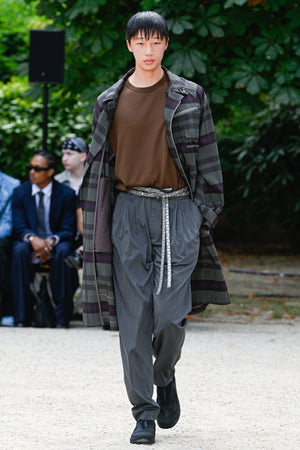 また、本テーマを構想する中で、リチャード・セラとジェームズ・タレルの2 人のアーティストを思い浮かべました。彼らは表現手法は正反対でも、自然との共存を前提とする点で共通しており、自身の服作りにも通じる哲学がある。その考えを取り入れ、「自然との調和」を重視したプロダクトを設計。リチャード・セラの「重厚さ」とジェームズ・タレルの「軽快さ」を素材や色で融合し、無骨さと軽やかさの対比を表現している。